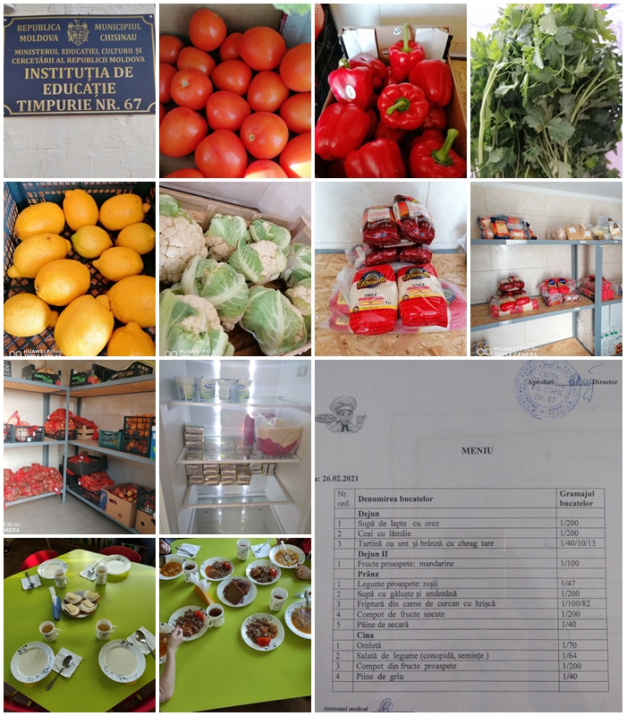 Alimentația copiilor este calitativă, variată după compoziția produselor alimentare primite, satisfăcând cu substanțe nutritive necesitățile organismului în creștere și se efectuează în corespundere cu meniul model pentru copiii din instituțiile de educație timpurie (sezon iarnă-primavara). Instituția beneficiaza de o gamă largă de produse alimentare de calitate care corespund satisfacțiilor contractuale, ceea ce dă posibilitatea de a pregăti bucate gustoase.