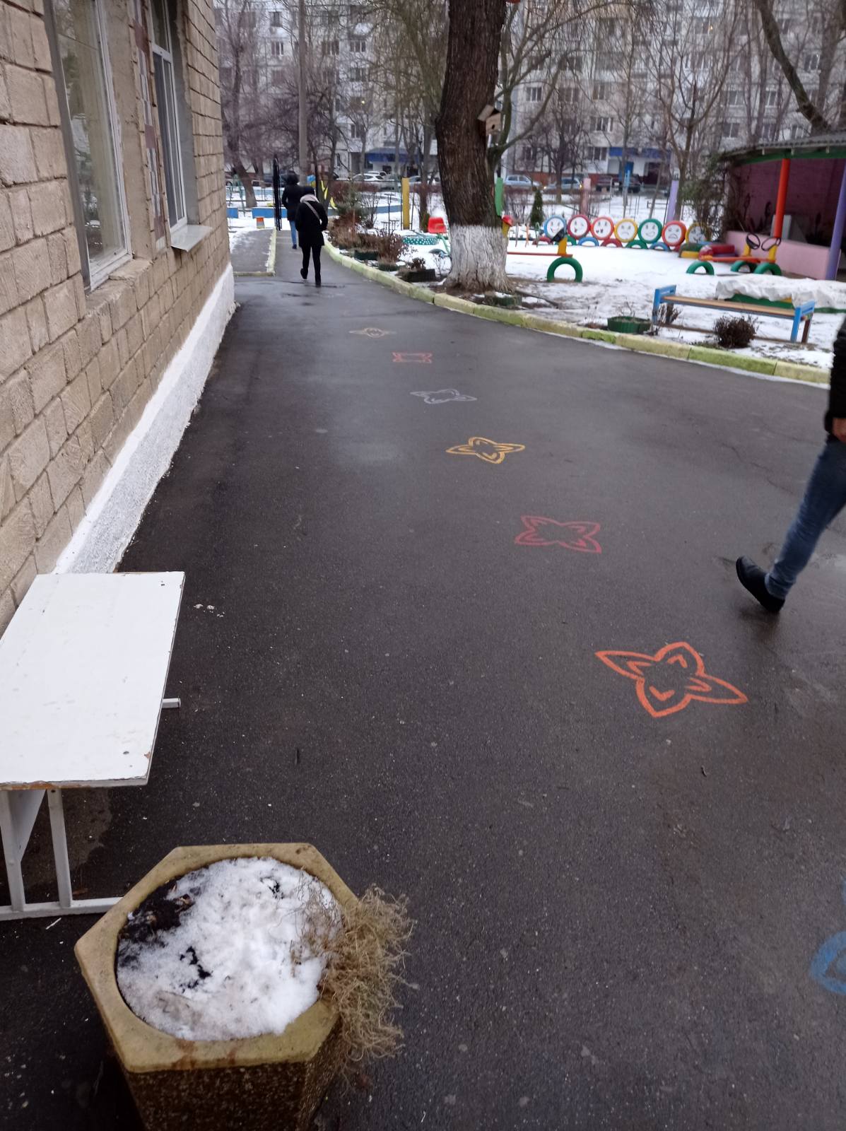 Instituția de educație timpurie, grădinița — creșă nr.161, str. Al. Russo, 61/3. Angajații instituției, zilnic, curăță terenul aferent/adiacent, îngrijesc căile de acces spre teritoriu și pe teritoriul grădiniței. Când este necesar folosesc materialul antiderapant cu care sunt asigurați la timp.