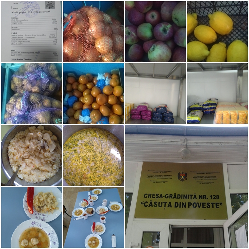 Instituția de Educație Timpurie 128 ,,Căsuța din poveste”, str. Otovasca, 21/3 Vă salută cu drag! Suntem aprovizionați cu produse alimentare conform comenzilor elaborate în baza meniului model și conform graficului livrărilor. Produsele corespund specificațiilor din contracte. Totodată sunt păstrate în depozite conform cerințelor specifice fiecărui produs. Bucatele sunt pregătite conform fișelor tehnologice și cu respectarea normelor sanitare. Meniul zilnic se elaborează de către asistenta medicala în colaborare cu angajații blocului alimentar conform Meniului model iarnă – primăvara 2021 și este ulterior aprobat de director.