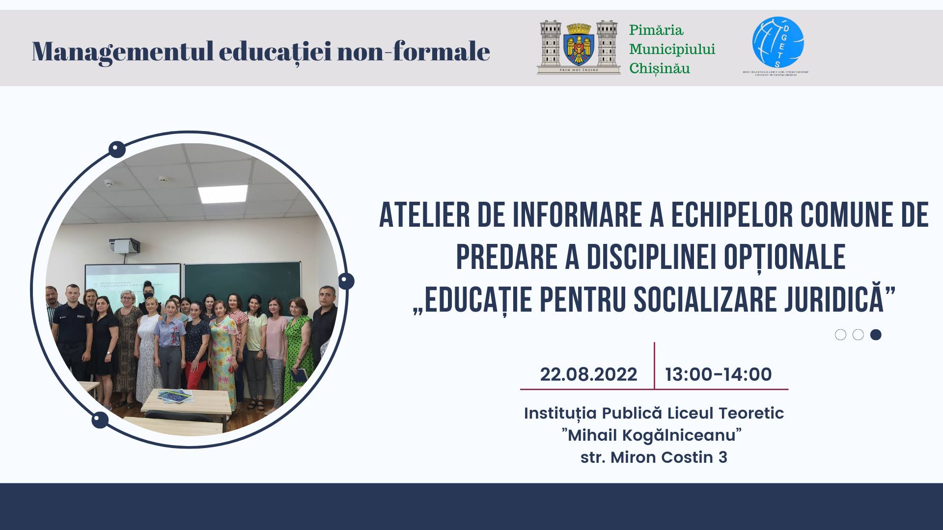 Atelier de informare a echipelor comune de predare a disciplinei opționale „Educație pentru socializare juridică”