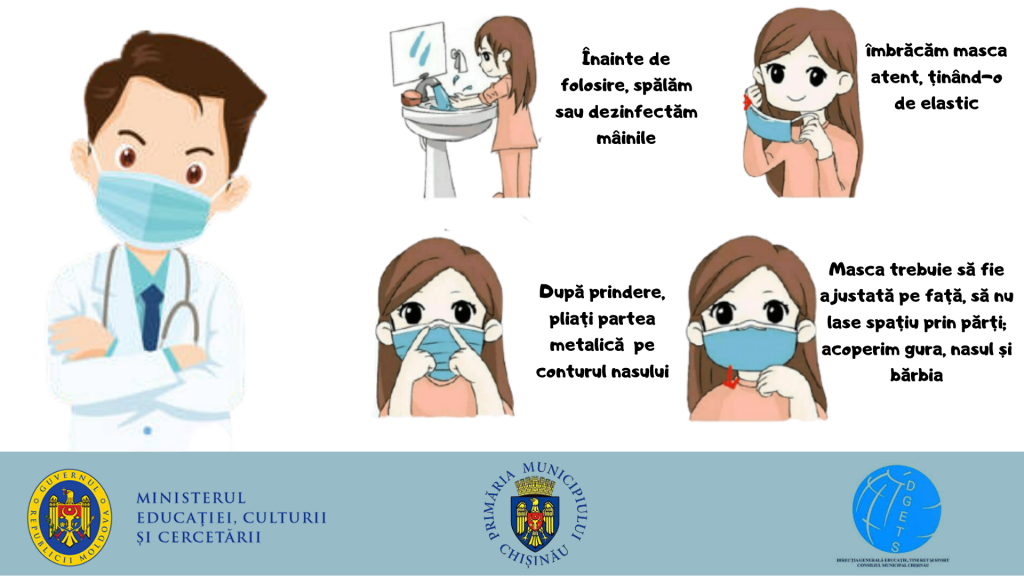 9) Ne spălăm pe mâini după ce scoatem masca.