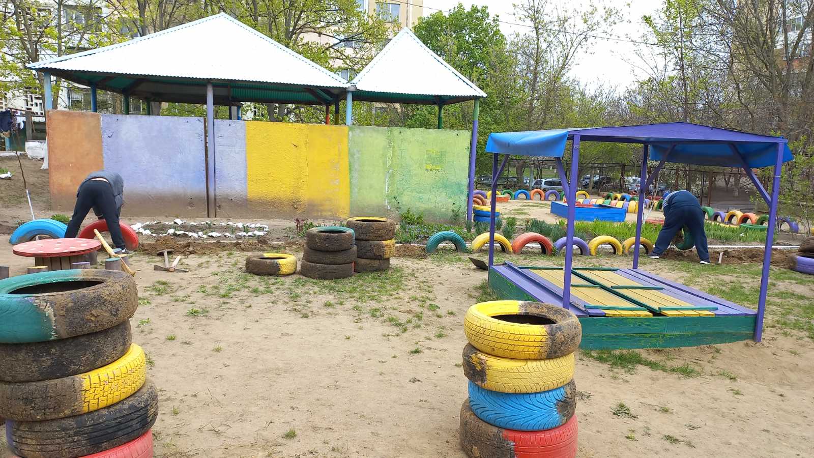 Suntem în IET nr.212, str.N.M.Spătaru,3/1. Aici s-a reuțit printr-un parteneriat cu părinții demolarea și evacuarea cauciucurilor sintetice de pe teritoriul instituției. Misiunea este îndeplinită! Fără anvelope! Bravo vouă, gospodarilor !!!