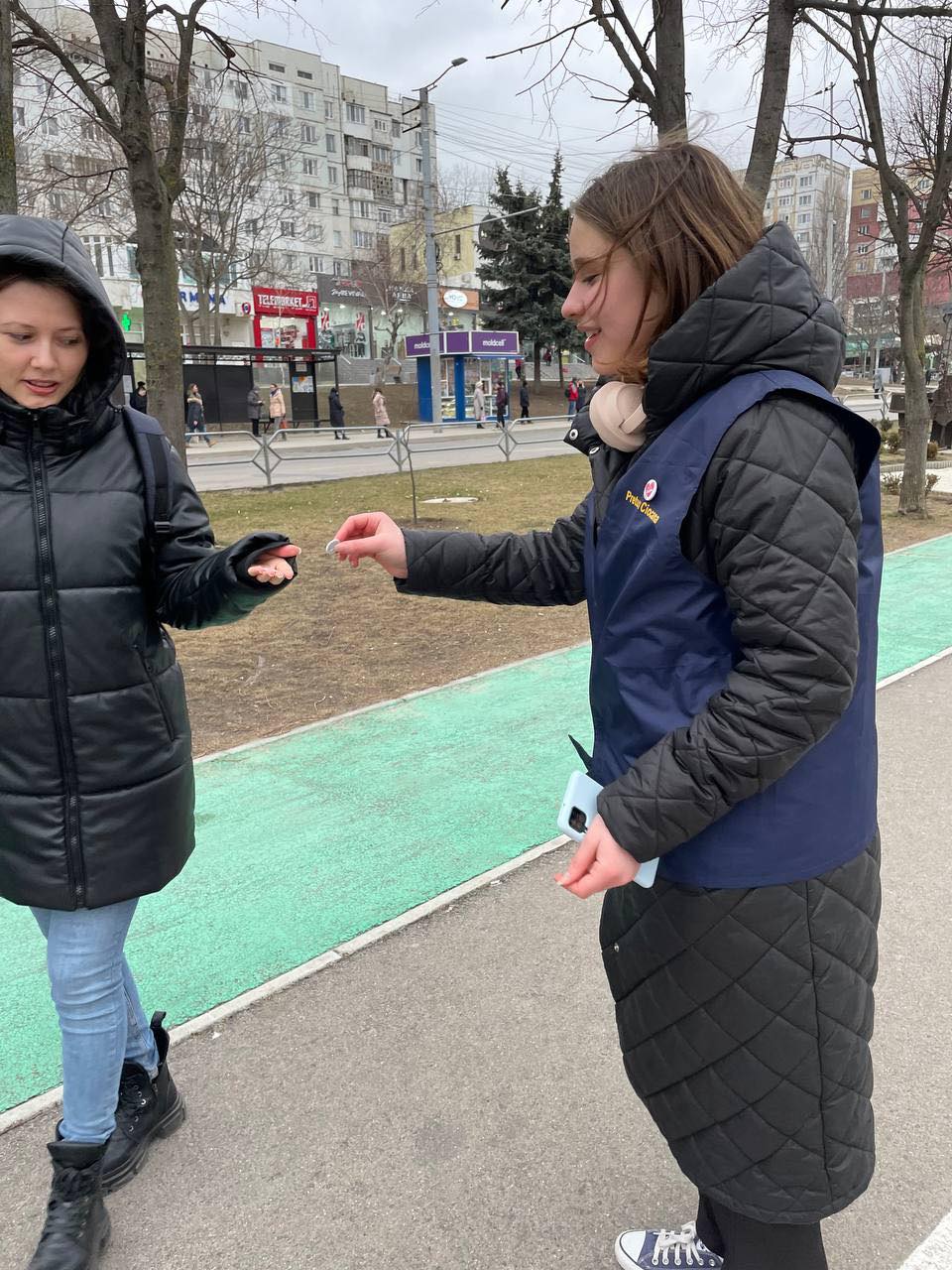 Trecătorii au rămas impresionați de mesajul tinerilor, care au primit în dar inimioare și îndemnați să fie mândri de Chișinău și sectorul drag.