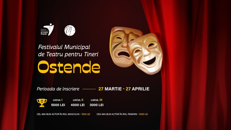 ℹCentrul Municipal de Tineret Chișinău a Direcției Generale Educație, Tineret și Sport lansează Festivalul Municipal de Teatru pentru Tineret „OSTENDE”, ediția a VI-a, care oferă tinerilor oportunitatea de a aborda teme de interes, tinerii vor fi instruiți și informați, prin workshopuri despre arta actorului, arta vorbirii și mișcarea scenică. Aceștia vor avea oportunitatea să-și demonstreze talentul și pasiunea față de arta teatrului, fiind apreciați și premiați de experți în domeniul dat.