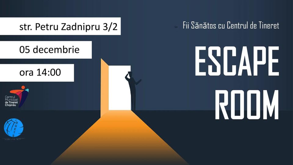 🗓La data de 05 decembrie Centrul Municipal de Tineret Chișinău a Direcției Generale Educație, Tineret și Sport organizează activitatea Escape Room din cadrul Campaniei de informare a tinerilor „Fii Sănătos cu Centrul de Tineret”