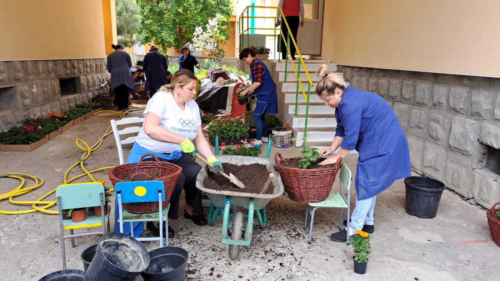Suntem în grădinița nr.225, bd.Mircea cel Bătrîn, 14/2. După finalizarea cu succes a lucrărilor de reparație capitală a instituției, conform celor 2 proiecte externe importante, angajații au purces la împodobirea aspectului exterior ai „ Almei mater„. S-au procurat flori, plante multianuale, coșuri, ghiveciuri și toate cele necesare pentru un dizain floristic miraculos.