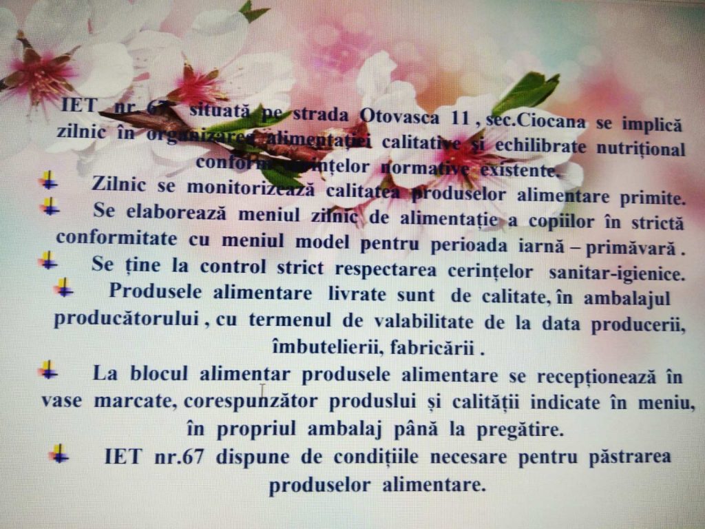 IET nr. 67 zilnic oferă o alimentație calitativă și echilibrată