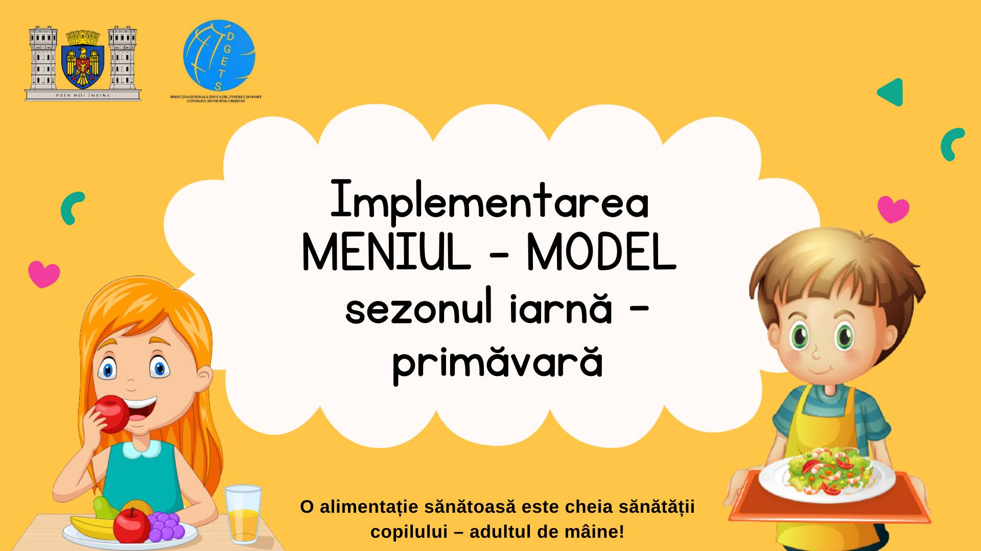Direcția Generală Educație Tineret și Sport a Consiliului municipal Chișinău vă informează că, începând de astăzi, 01 decembrie 2021, se va implementa MENIUL – MODEL unic de către toate instituțiile de educație timpurie din orașul Chișinău.