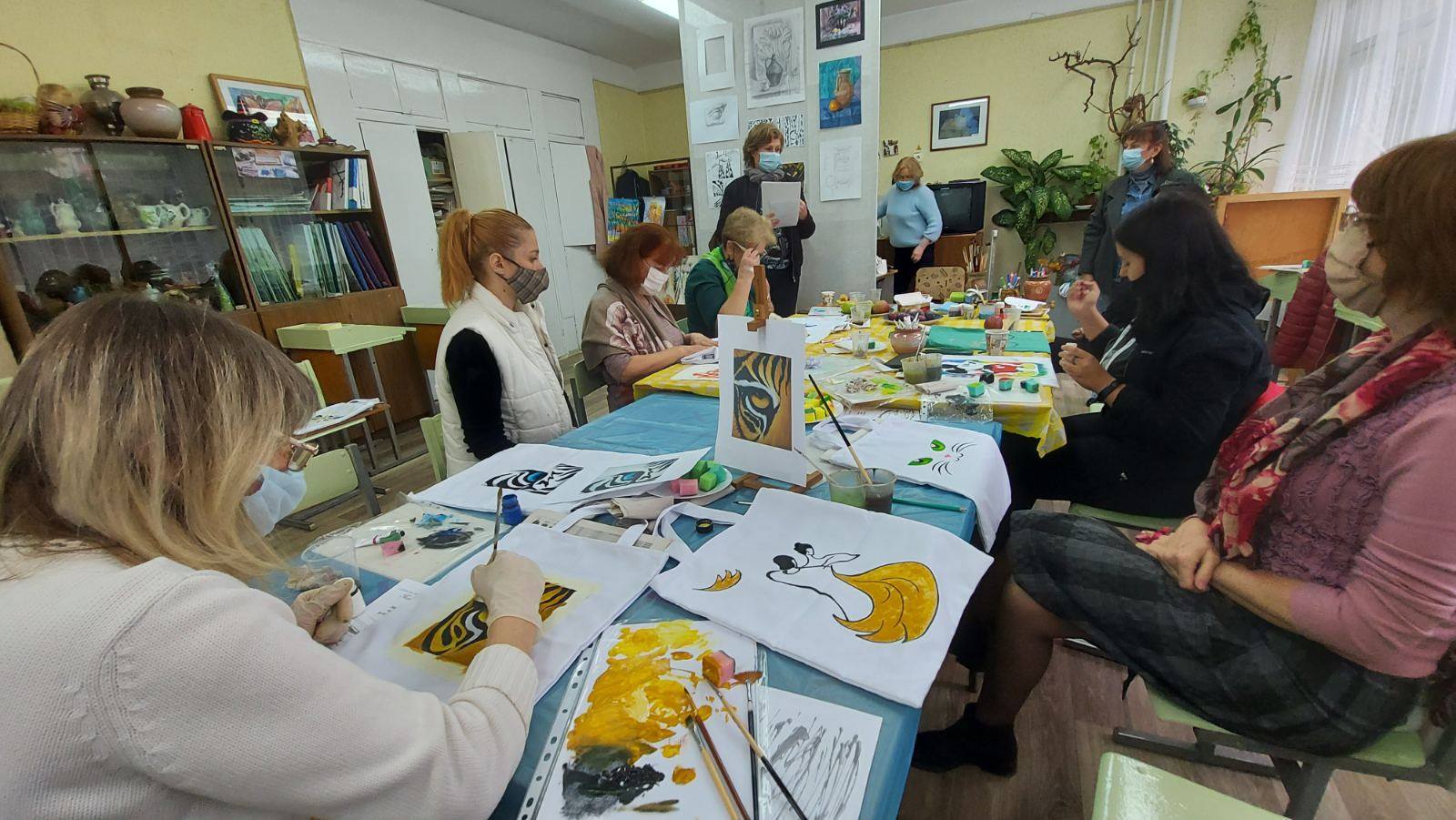 Astăzi, 28.10.2020, Centrul de creație a copiilor a desfășurat un atelier de creație pentru cadrele didactice cu genericul ,,Imprimarea desenului pe articole textile”, moderat de conducătorul de cerc ,,Creație plastică”- Miroșnicenco Tatiana.