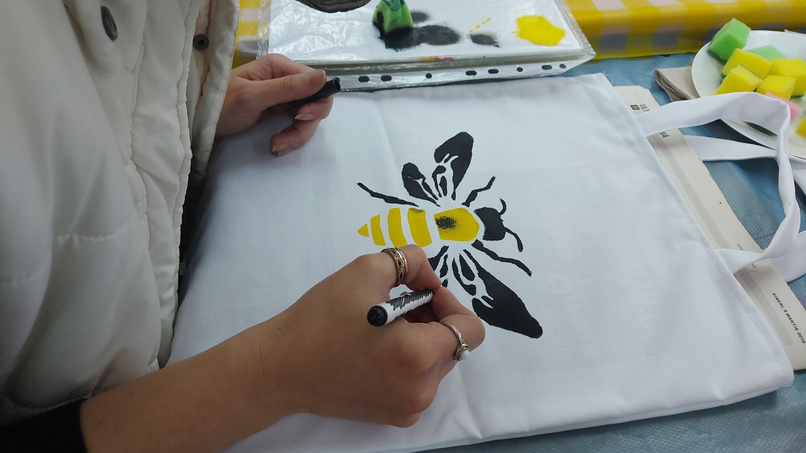 Participanții la atelier au avut posibilitatea să dea frâu imaginației și să decoreze o torbiță eco după plac și dispoziție. Astfel obiectivele trasate au fost realizate cu succes!!!