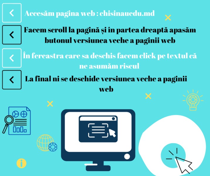 Direcția Generală Educație, Tineret și Sport a Consiliului municipal Chișinău, vă aduce la cunoștință despre modalitatea de accesare a paginii WEB, versiunea veche.