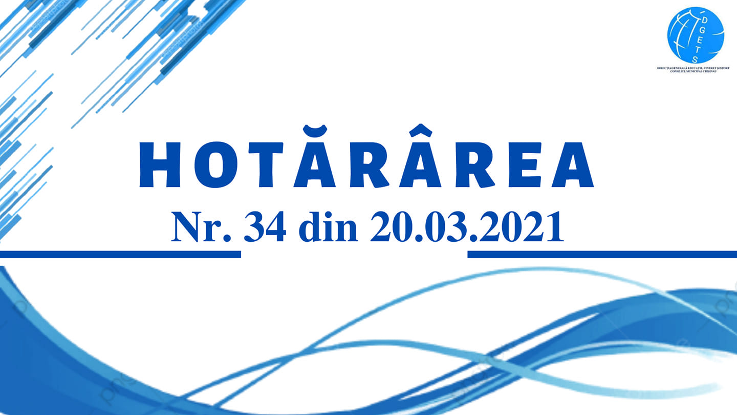 În scopul asigurării securității, protecției vieții şi sănătății elevilor și cadrelor didactice urmare a evoluției situației epidemiologice, în temeiul Hotărârii nr.34 din 20.03.2021 a Comisiei Extraordinare de Sănătate Publică a municipiului Chișinău. Direcția Generală Educație, Tineret și Sport al Consiliului municipal Chișinău anunță despre organizarea procesului educațional în învățământul primar, gimnazial, liceal și extrașcolar la distanță începând cu ziua de luni, 22 martie. pentru o perioadă nedeterminată. Grădinițele din municipiul Chișinău își vor continuă activitatea cu prezența fizică a copiilor, în conformitate cu Regulamentul sanitar pentru instituțiile de educație timpurie, aprobat prin HG nr.1211 din 04.11.2016 și cu respectarea strictă a normelor de sănătate publică privind prevenirea și răspândirea COVID-19.