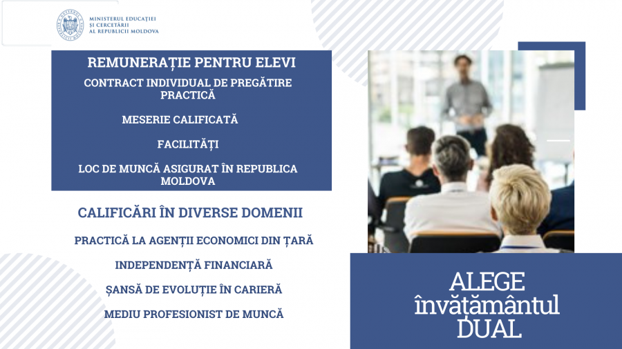 Prin învățământul dual se asigură o mai bună corelare între cererea de pe piața muncii și oferta educațională. Tinerilor li se oferă posibilitatea nu numai de a dobândi abilități profesionale, cunoștințe, experiență, ci și de a se angaja imediat după absolvire și de a rămâne să lucreze în Republica Moldova.