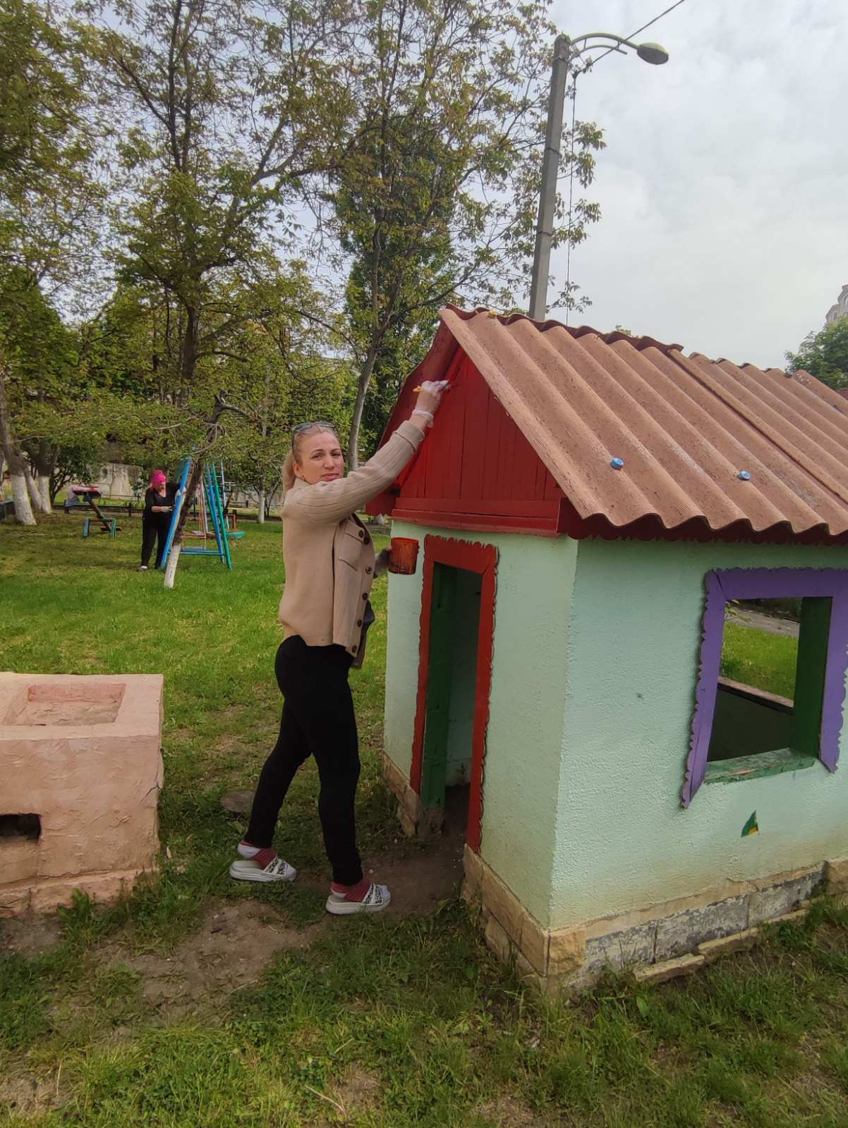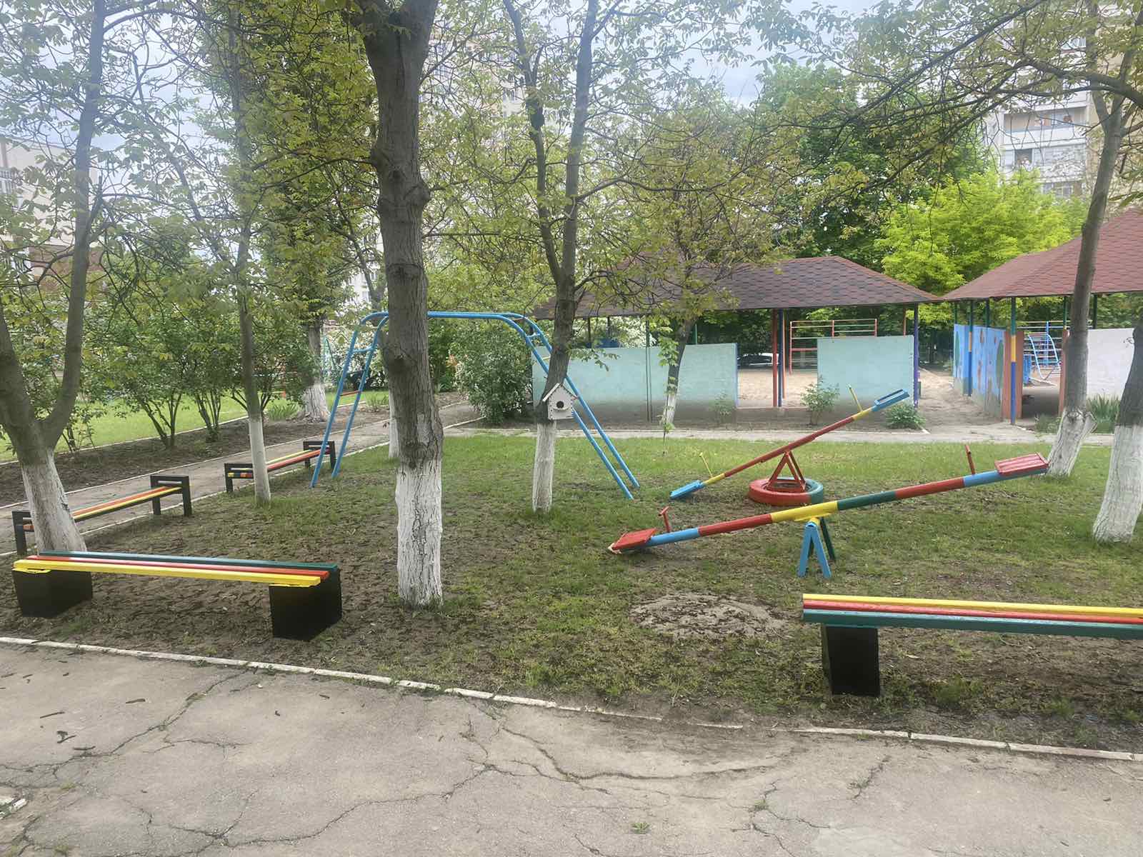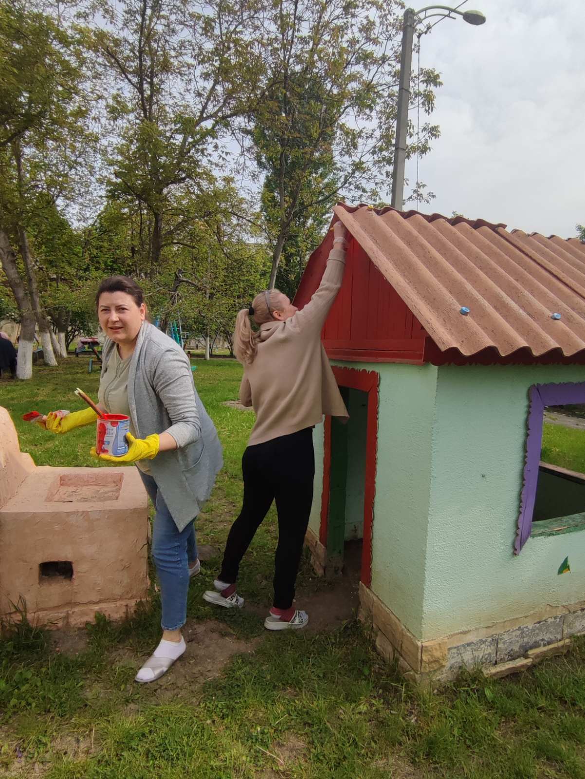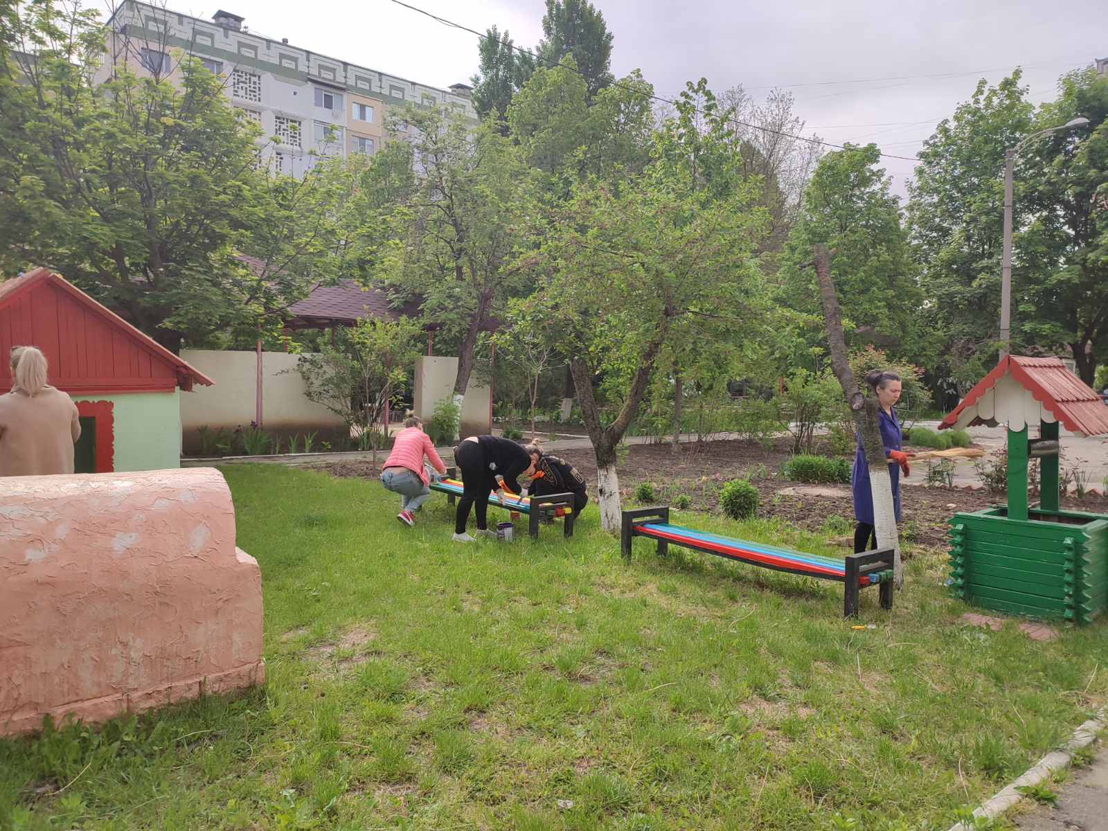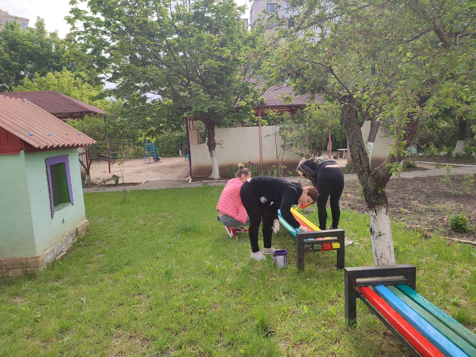 Suntem la grădinița nr. 197, bd. Mircea cel Bătrîn, 4/2. Angajații instituției au finalizat salubrizarea terenului de odihnă și de joacă a copiilor, au cosit iarba, au igienizat încăperile. Astăzi, toți lucrătorii s-au mobilizat să coloreze tot ce se află pe teritoriul grădiniței: vopsesc gardul, băncile de pe teren, căsuțele, fântânițele…etc. Timpul de afară este frumos și predispune la o muncă creativă! Spor la muncă, gospodari!
