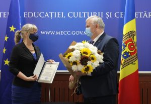 Ministrul i-a conferit Reprezentantei UNICEF în țara noastră, Desiree M. Jongsma, Diploma de onoare a Ministerului Educației, Culturii și Cercetării (MECC) pentru merite deosebite și succese remarcabile în activitatea de coordonare a Oficiului UNICEF Moldova.