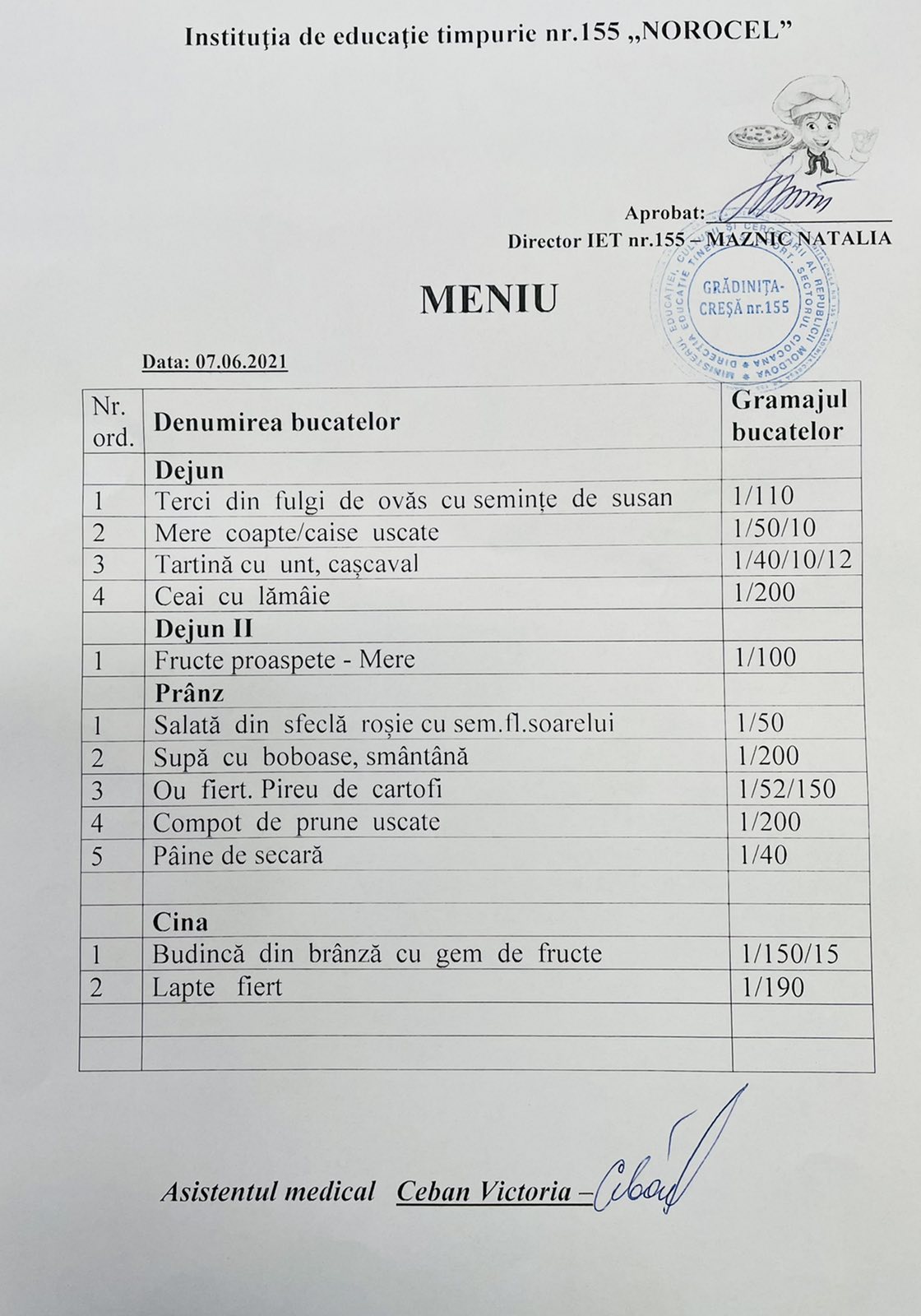 • Implementarea Meniului-model unic (sezon vară-toamnă) are loc cu succes, deoarece este variat și sănătos!!!