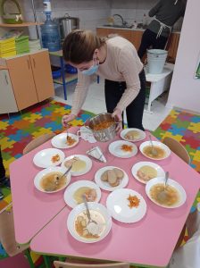 Organizarea calitativă a alimentației copiilor în Instituția de educație timpurie, grădinița — creșă nr.177, str.Voluntarilor 14/3 se consideră un factor determinant în dezvoltarea fizică și intelectuală a copilașilor. Produsele alimentare, livrate de Operatorii Economici, sunt însoțite de acte care confirmă provinența și valabilitatea acestora. Angajații instituției respectă toate Recomandările pentru un regim alimentar sănătos, stipulate în ordinul Ministerului Sănătății al RM nr.638 din 12.08.2016. Scopul este să asigure dreptul copilului la o nutriție adecvată, bogată în vitamine — legume, fructe, ceea ce asigură un Meniu model unic aprobat pentu toate instituțiile de educație timpurie din municipiu.