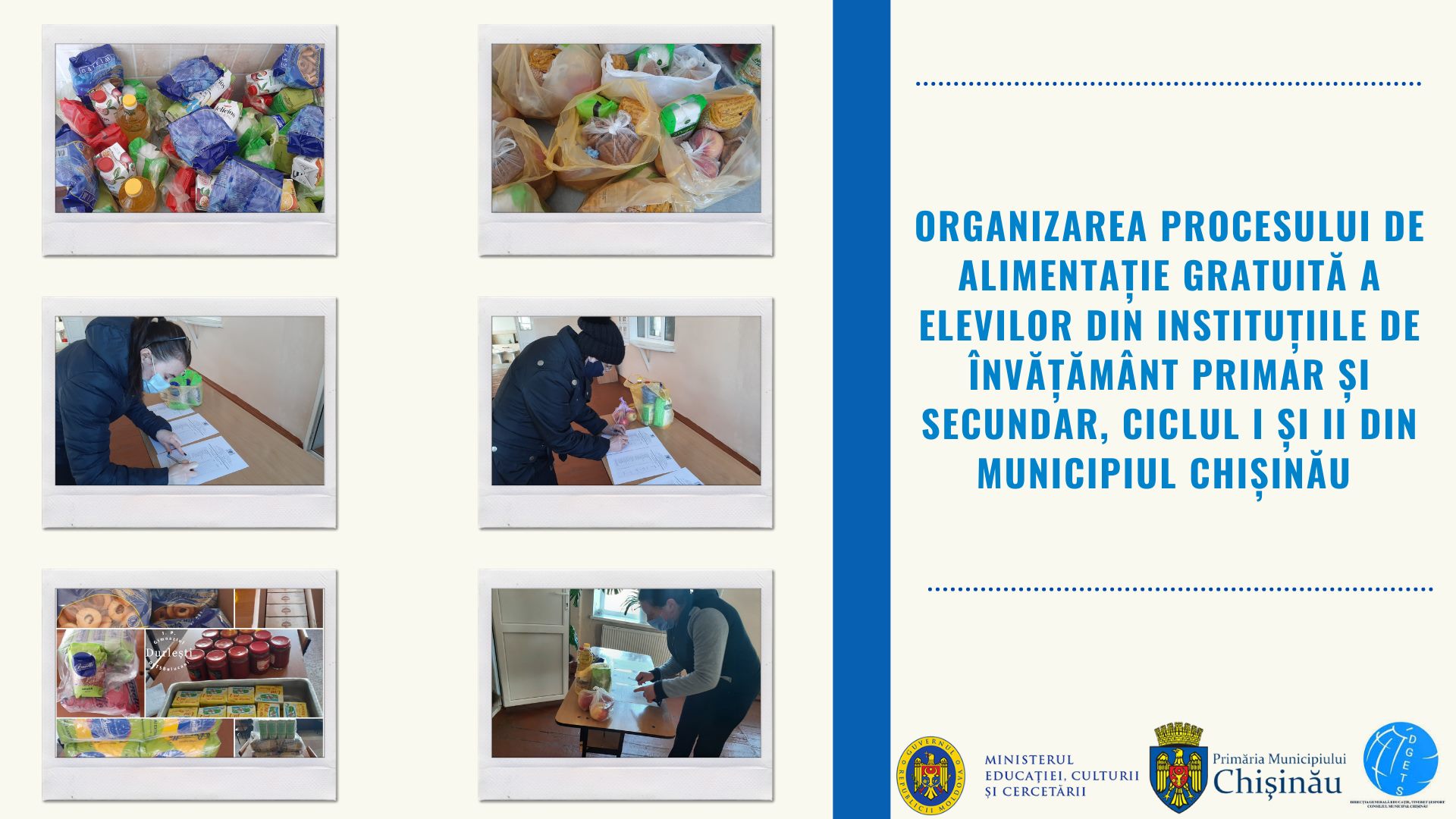 În context menționăm că alimentația gratuită a elevilor din instituțiile de învățământ primar și secundar, ciclul I și II din municipiul Chișinău prin distribuirea pachetelor, se desfășoară conform ordinului DGETS, nr. 224 din 22.03.2021.