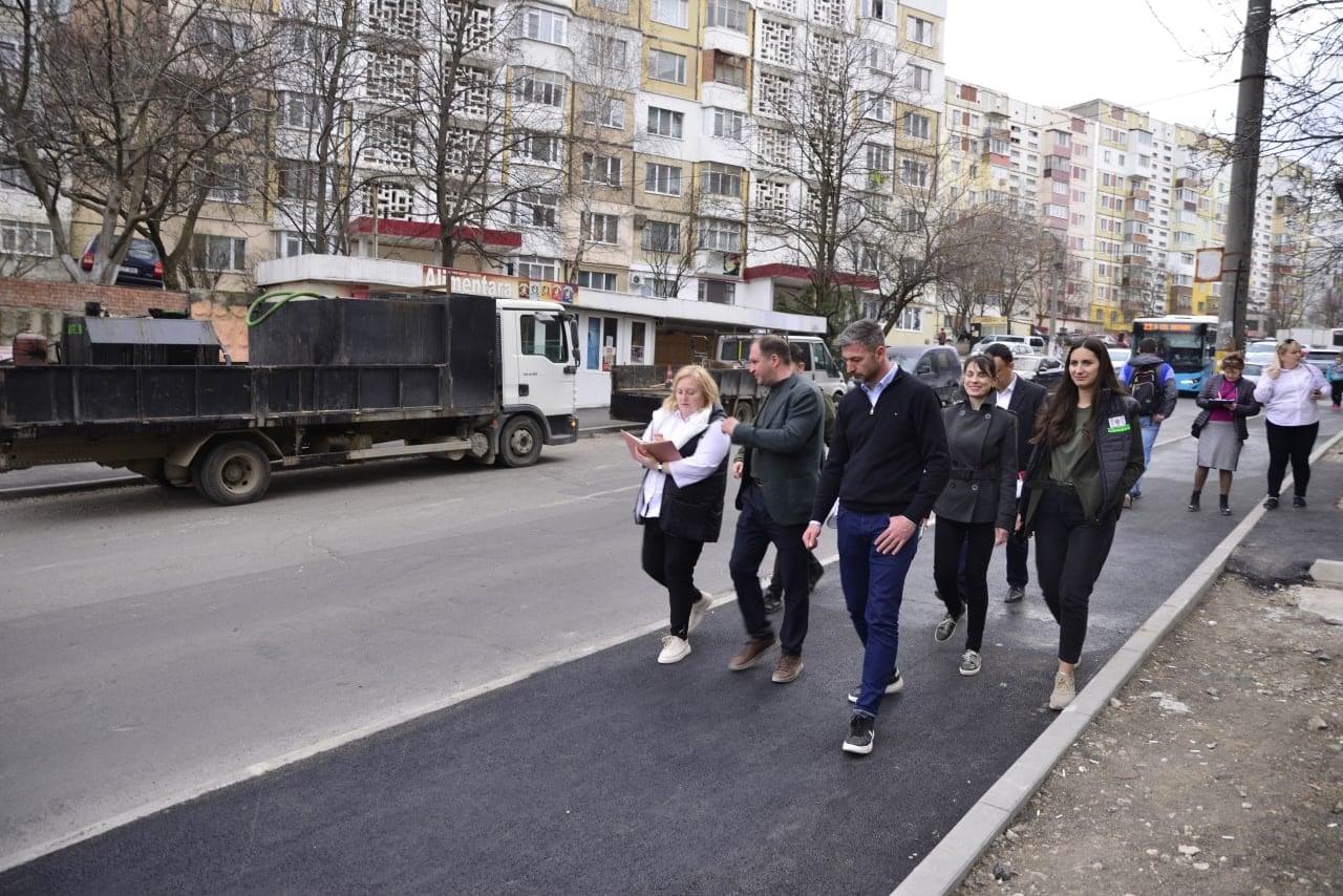 📌 1. Ремонтируются тротуар и аллея на улице М. Садовяну, на отрезке от ул. А. Руссо до ул. И. Виеру. Также здесь будут уличная мебель, парковочные места и благоустроенные зеленые насаждения.
