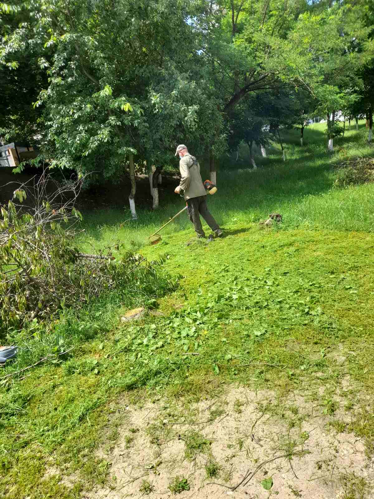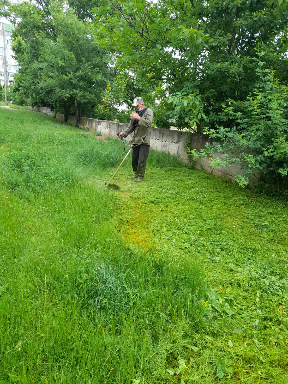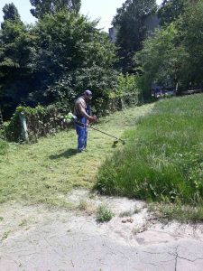 Continuă lucrările de salubrizare a teritoriului aferent/adiacent al instituției de învățământ. La ordinea de zi este cositul ierbii care inundă terenurile după ploile anterioare. Efortul se depune regulat. terenurile sunt îngrijite.