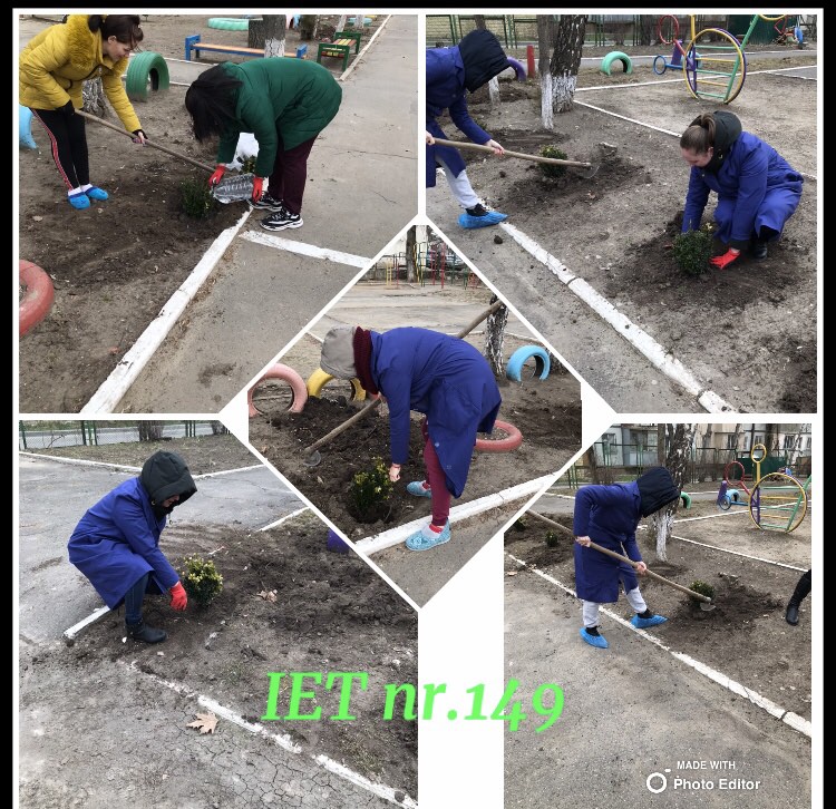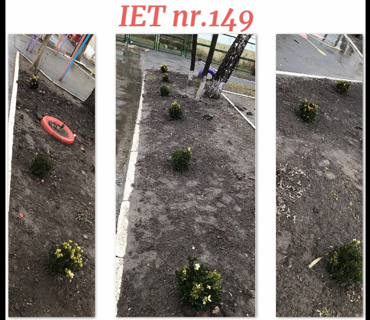 Angajații, din fiecare grupă din IET nr.149, 14 grupe, și-au adus aportul pentru amenajarea intrării principale în instituție prin plantarea a 14 arbuști de Buxus, care anul împrejur ne vor bucura ochii prin verdeața lor.